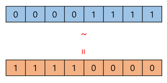 0000_1111에 ~ 연산자를 사용하면 비트가 반전되어 1111_000이 된다.