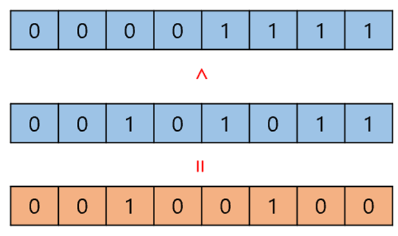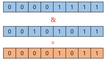0000_1111(15) & 0010_1011(43) = 0000_1011(11)이 된다.