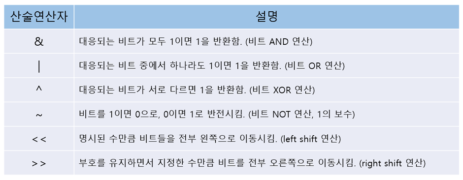 비트연산자는 비트단위로 논리연산을 할 때 사용하는 연산자이다.