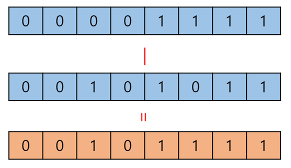 0000_1111(15) | 0010_1011(43) = 0010_1111(47)이 된다.
