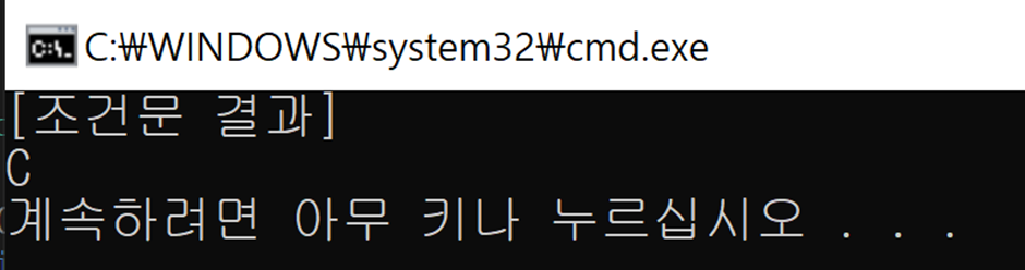 두번째 조건문의 경우 if문과 else if문의 조건식이 거짓이므로 else문이 실행되었음을 확인할 수 있다.