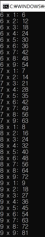 즉, 첫 번째 while문 a=2, 두 번째 while문 b=1~9까지 반복