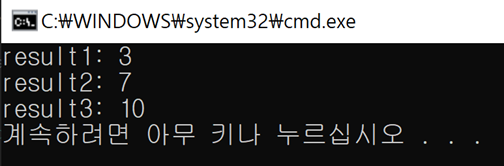 그리고 int형 변수 result를 선언하고 AddFunction()의 출력값을 대입하였다.