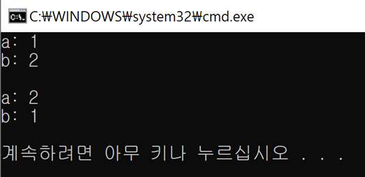 두개의 int형 값은 int a와 int b의 매개변수를 통해 입력받는다.