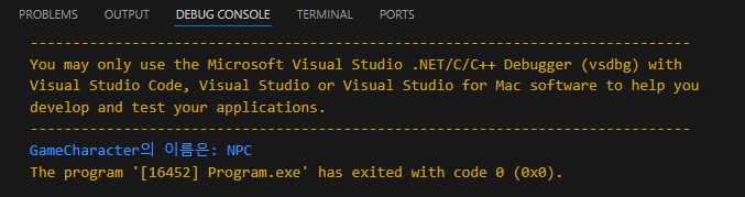 Console.WriteLine("GameCharacter의 이름은: " + gameCharacter.name);