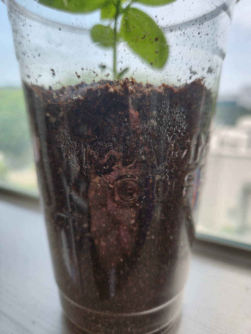 물을 안 줘도 사진처럼 임시 화분(메가커피 일회용 컵...)에 습기가 찬 경우가 있어요